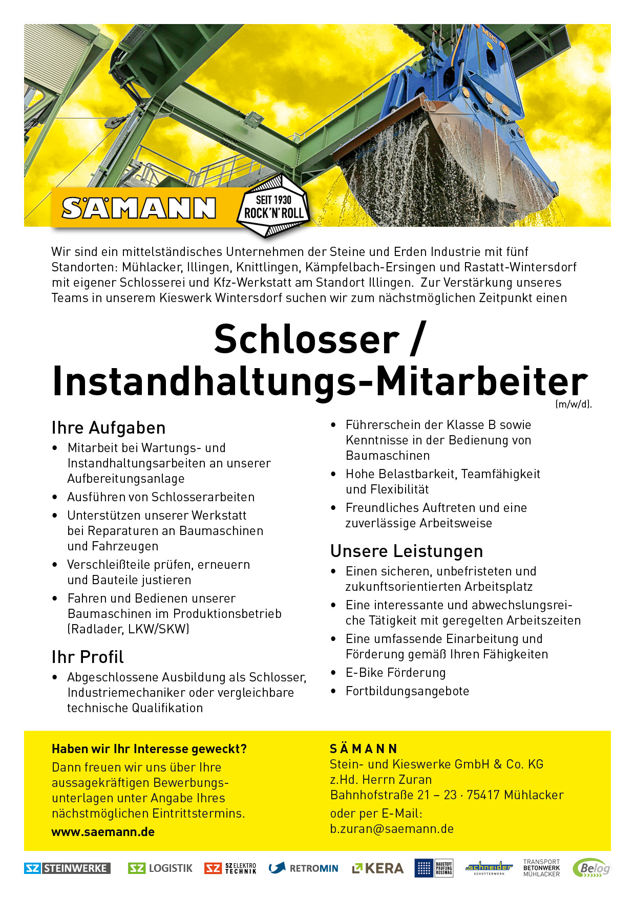 Willkommen auf unserer Jobseite! Wir sind ein modernes Unternehmen in der Steine- und Erden-Industrie und gestalten mit Leidenschaft und Fachwissen die Welt von morgen. Als Arbeitgeber setzen wir auf ein starkes Team, innovative Technologien und nachhaltige Prozesse. Starten Sie jetzt in Ihnen neuen Traumjob bei uns und werde Teil eines traditionsreichen und zukunftsorientierten Unternehmens!
